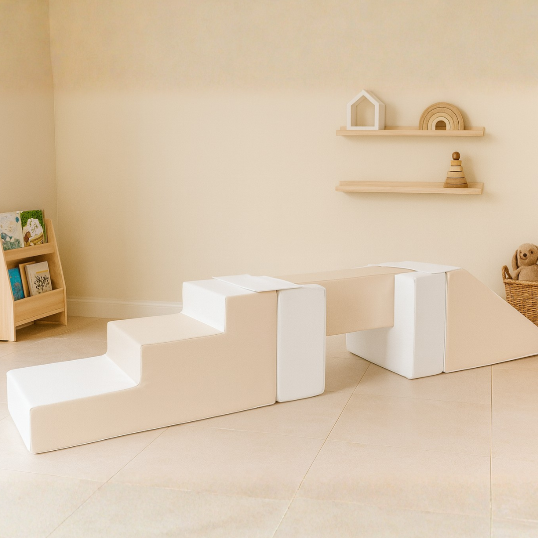 Mostiček s toboganom je ustvarjen za varno, spodbudno in razgibano otroško igro. V kompletu je pet različnih barvnih penastih elementov, med katerimi so tudi mostiček in tobogan, kar otrokom omogoča gradnjo številnih konstrukcij in domišljijskih svetov. Set spodbuja ustvarjalnost, prostorsko razumevanje ter razvoj finih in grobih motoričnih spretnosti, hkrati pa otroke motivira k aktivnemu gibanju.