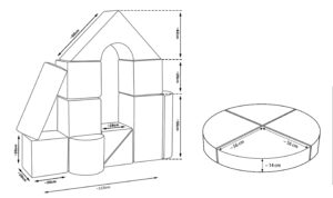 Združuje dva seta – 11 grajskih penastih elementov ter 4 krožne module, ki skupaj tvorijo popolno igralno okolje za otroke vseh starosti. Različne oblike omogočajo sestavljanje številnih postavitev, od domiselnih grajskih stolpov do motoričnih poligonov, kar spodbuja otrokovo ustvarjalnost, prostorsko zaznavanje ter razvoj domišljije.
